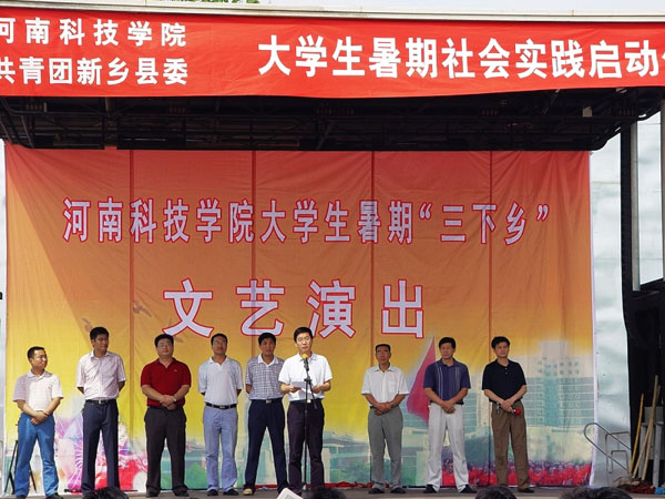 在热烈的掌声中,党委副书记郭海波宣布河南科技学院2008大学生暑期“三下乡”社会实践正式启动。