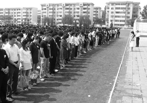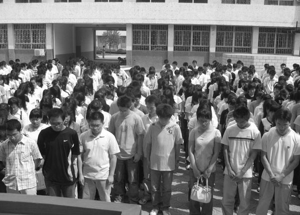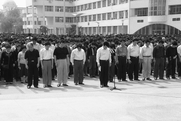 我校师生员工向汶川大地震遇难同胞志哀