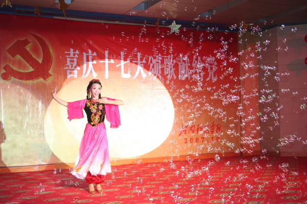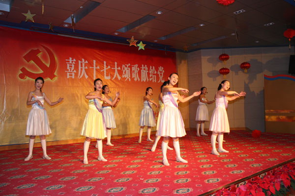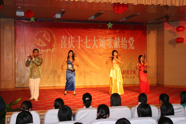 10月15日,党的十七大隆重开幕,为表达全院师生员工喜庆党的十七大的喜悦心情,院党委宣传部、院团委、艺术学院联合主办了“喜庆十七大,颂歌献给党”文艺晚会。