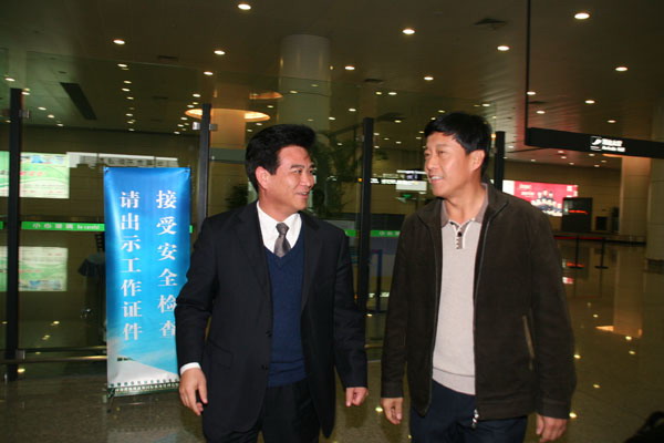 教授抵达新郑机场,我校党委书记严全治一行到机场迎接。(迎评宣传组)