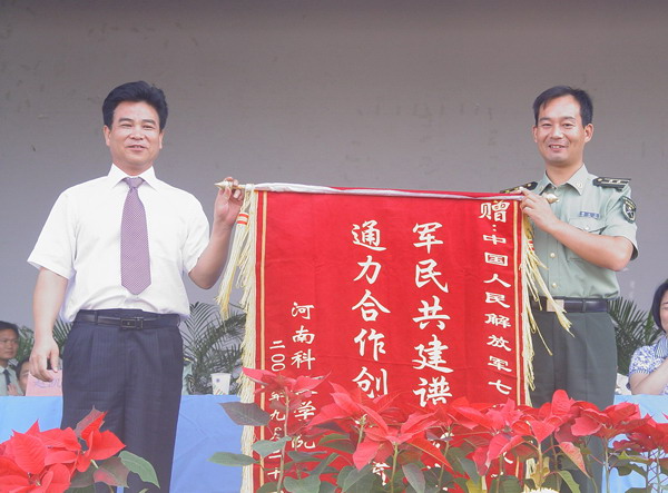 学校还向71697部队帮训教官颁发了荣誉证书,表彰了他们在军训中所做的贡献。校党委书记严全治代表学校向71697部队赠送了锦旗,表达了军民共建的深情厚谊。(武装部 杜兴安)