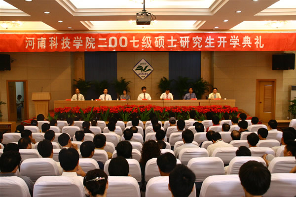 开学典礼在雄壮的国歌和激昂的校歌声中拉开了帷幕。校长王清连教授发表了热情洋溢的讲话,他代表校党委、行政和全校师生员工,向2007级硕士研究生新同学表示热烈的欢迎!并向全体教师致以节日的祝贺!他向2007级硕士研究生介绍了学校的发展历史、发展现状和前景,并对全体新生提出了殷切希望:希望同学们志存高远,刻苦钻研,努力把自己塑造成为社会发展的栋梁之才;努力开拓,不断创新,以优异的成绩完成论文研究工作;在生活中严于律己,养成良好的学习和生活习惯;继承和发扬我校的优良校风,脚踏实地,不畏艰难,刻苦努力,勇于创新,做一个有信念、有学识,身心健康,肩负使命的优秀的社会主义建设者和接班人。
