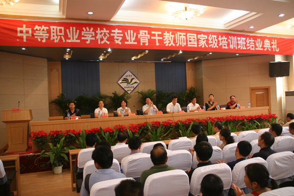 8月29日上午,我校第一期中职专业骨干教师国家级培训班结业典礼在图书馆二楼报告厅举行。副校长梁赖出席会议,成人教育学院、信息工程学院、园林学院、机电学院、艺术学院等院系负责人、国家级培训班授课老师及104名学员参加会议。会议由校长助理赵一鹏主持。