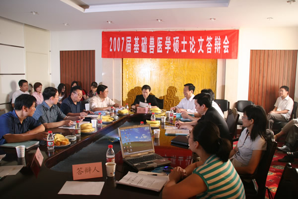 6月5日上午,我校与河南农业大学“联合招生,独立培养”的首届基础兽医学硕士研究生毕业论文答辩会在我校电教综合楼八楼八楼会议室举行。河南农业大学校长、博士生导师王艳玲教授,我校副校长刘兴友教授出席答辩会,研究生处处长李敬玺教授、科技处处长王三虎教授、中国科学院动物研究所何宏轩研究员、动物科学学院副院长王选年教授和王自良教授等参加答辩会,动物科学学院部分青年教师和2005、2006级在校硕士研究生列席答辩会。答辩会由动物科学学院院长李培庆教授主持。
