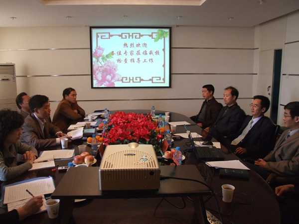 校党委副书记郭海波代表校党委、校行政对考核专家组莅临我校检查指导工作表示欢迎,并简要介绍了我校的基本情况。专家组听取了学生处处长何雅璞对我校2006年国家助学贷款工作情况的专项汇报。考核检查组随后召开了学生座谈会,实地查看了学生资助管理中心的办公场所、设备、档案管理及相关文字材料。