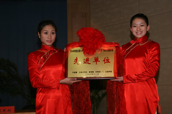 近年来,我校暑期大学生志愿者社会实践工作在各方面的共同努力下进展顺利,成效显著,受到了省市各界的肯定和表彰,扩大了学校的社会影响力和美誉度。尤其是今年荣获了中宣部、中央文明办、教育部、团中央、全国学联共同授予的“全国大中专学生志愿者暑期‘三下乡’社会实践活动先进单位”称号。党委书记、校长严全治为“全国大中专学生志愿者暑期‘三下乡’社会实践活动先进单位”揭牌。