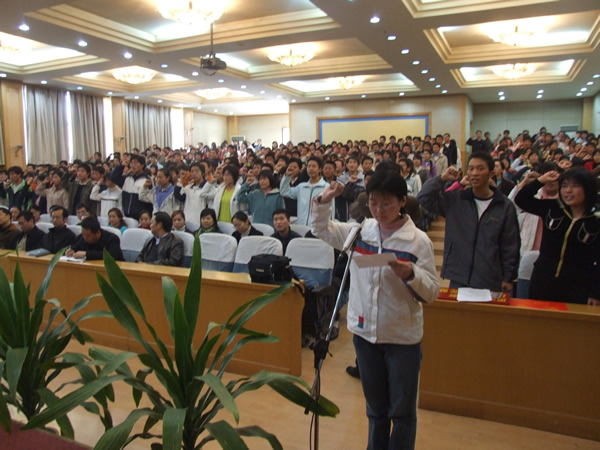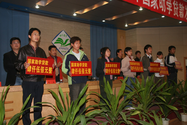 大会在激越的国歌和校歌声中开幕。校党委副书记郭海波首先宣读了《关于表彰首届优秀贫困大学生的决定》,他号召全校广大学生向机电学院机械设计制造及自动化专业062班任雪振等七名优秀贫困大学生学习,学习他们勤俭节约、艰苦奋斗、自立自强、奋发进取的精神。大会向他们颁发了证书和奖金。随后,14名享受助学贷款的学生代表上台接受了2006年度国家助学贷款,参加会议的全体受助学生进行了庄严的集体宣誓,食品学院唐波同学代表全体受助学生作了发言,感谢党和政府给予贫困大学生的关怀,表达了将自觉遵守贷款协议,按期偿还贷款本息,诚实守信,勤奋学习,以优异的成绩报答国家、报答社会、报答学校的心声。