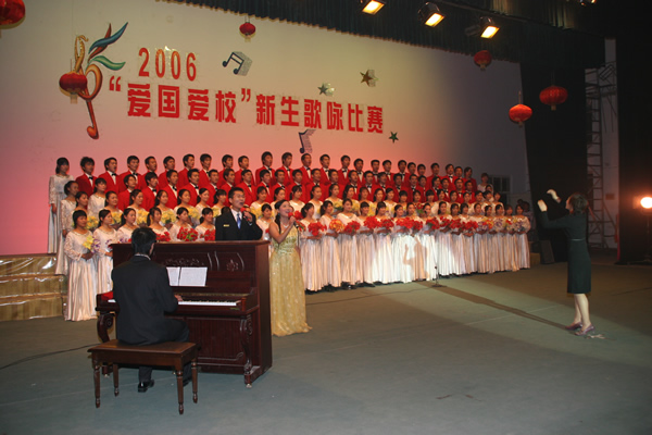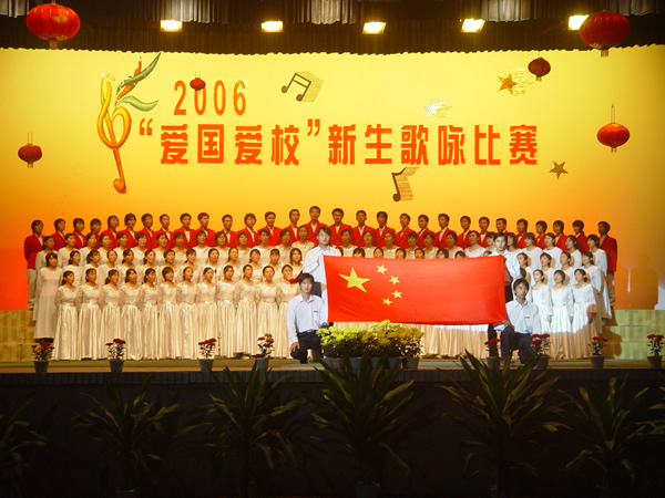 一年一度的“爱国爱校”新生歌咏比赛是我校大学生文化素质教育的重要载体和内容,它不仅丰富了同学们的课余文化生活,而且对提高大学生的道德情操具有积极的推动作用。(宣传部)