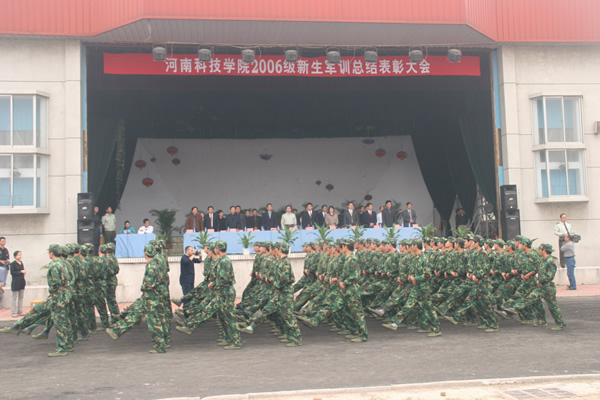 9月30日上午,东操场成了一片绿色的海洋,我校2006级新生军训总结表彰大会在这里隆重举行。学校党政领导严全治、张玉珍、郭海波、王文鹏、张民校,71697部队首长及有关党政部门负责人和各院(系)总支书记出席了大会。