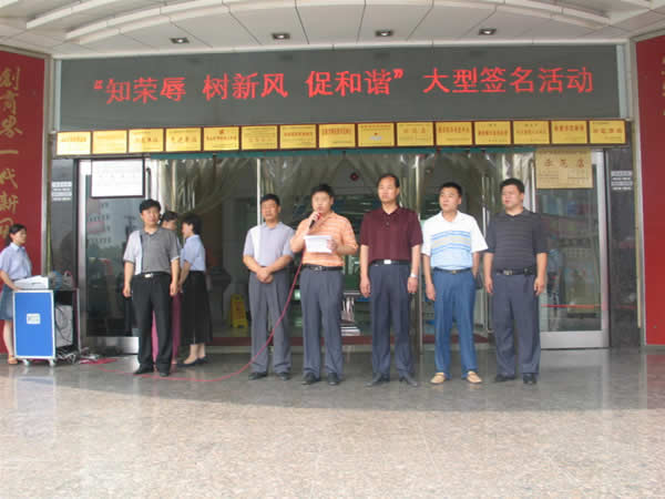 7月1日上午,河南科技学院与新乡市百货大楼“知荣辱、树新风、促和谐”大型签名活动在新乡市百货大楼门前广场举行。团市委副书记李海潮,我院院长助理、新科学院院长梅宪宾、新科学院党总支书记张立华,新乡市百货大楼党委副书记杨威等出席仪式。新科学院部分老师、百货大楼职工代表和我院暑期大学生荣辱观教育宣讲团100名成员参加了签名启动仪式。