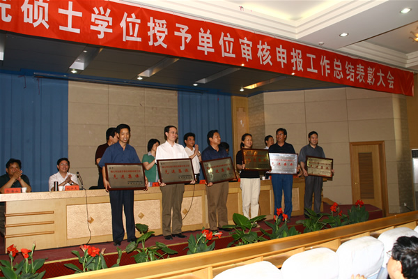 会议在庄严的国歌和激越的校歌声中开幕,党委副书记张玉珍首先宣读了国务院学位委员会2006[4]号《关于批准新增博士、硕士学位授予单位的通知》:经国务院学位委员会第二十二次会议审议,我院被批准增列为硕士学位授予单位,农产品加工及贮藏工程、作物遗传育种、蔬菜学、农业昆虫与害虫防治、预防兽医学等五个学科被批准为硕士学位授权学科。副院长王清连宣读了我院《关于表彰申硕工作先进集体、先进个人的决定》。在欢快的乐曲声中,大会对生命科技学院、动物科学学院、园林学院、食品学院、植物保护系、研究生工作处等6个先进集体和37个先进个人进行了表彰。
