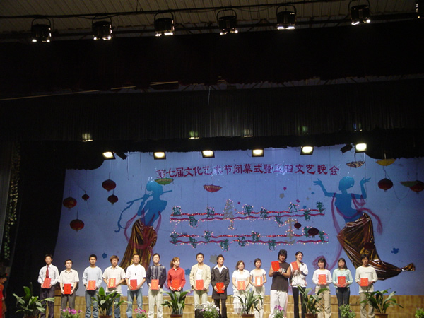 接着举行了第七届大学生文化艺术节颁奖仪式,出席领导对文化艺术节13个项目的一等奖获得者代表颁发了荣誉证书。