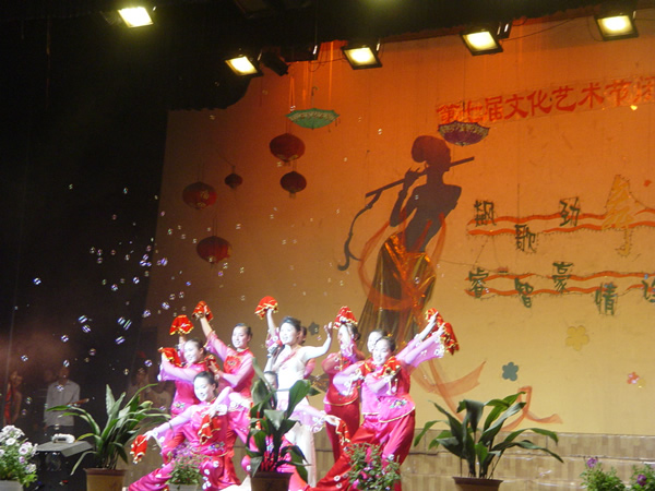 演出中,幽默风趣的超级模仿秀、激情飞扬的流行歌曲联唱、动感十足的街舞等表演,把台上台下的气氛一次次推向高潮。最后,随着一曲歌伴舞《越走路越宽》,晚会在纷飞的礼花中落下了帷幕,同时也标志着我院第七届大学生文化艺术节圆满结束。