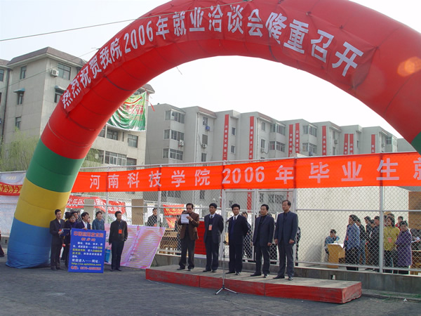 3月26日上午,我院2006年毕业生就业洽谈会在院排球场隆重开幕。院党委书记、院长严全治,副院长王文鹏,院长助理梅宪宾等学院领导出席了开幕式,开幕式由院招生就业办公室主任陈红卫主持。副院长王文鹏代表学院作了热情洋溢的讲话,他简要介绍了我院的基本情况和2006届毕业生的基本特点,并向到会参加洽谈会的用人单位表示热烈欢迎。用人单位代表河南天方药业股份有限公司人力资源处李建国处长和我院毕业生代表刘振华分别作了发言,共有来自我省及河北、北京、山西、海南等10个省、市的220多家用人单位和我院毕业生2000余人参加了此次招聘会。
