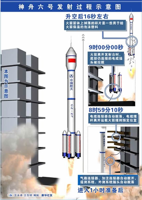 10月12日9时0分0秒,神舟六号在酒泉卫星发射中心点火升空。