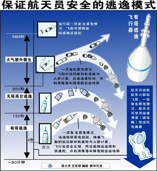 长征-2F火箭发射全过程示意图:推进舱帆板展开