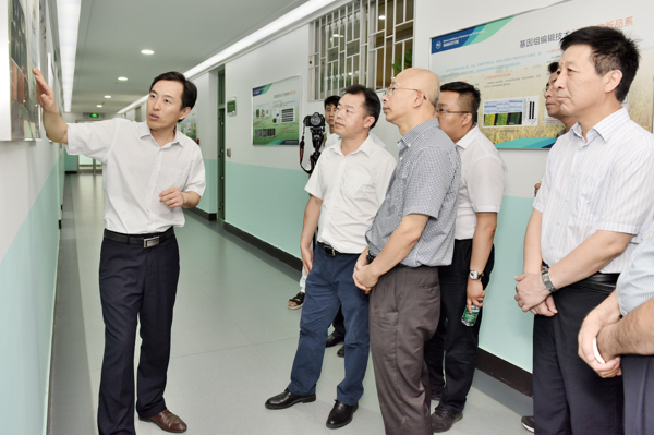 校长李成伟为调研组讲解基因组编辑技术在育种中的应用
