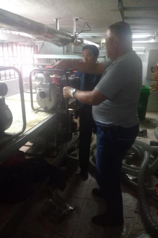 后勤服务集团及时在供水供电关键部位准备了防汛沙袋,对高层地下室排水设备进行了全面调试准备,备好了汽油抽水机及发动机40余台,备足了汽油等燃料,加强了值班和巡站力度。