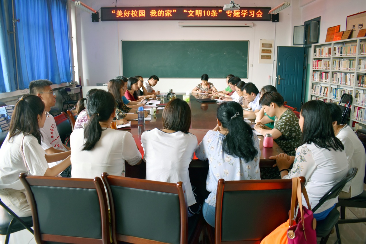 6月14日下午,马克思主义教育学院召开全体教职工会议,对“美好校园·我的家”“文明10条”进行专题学习。