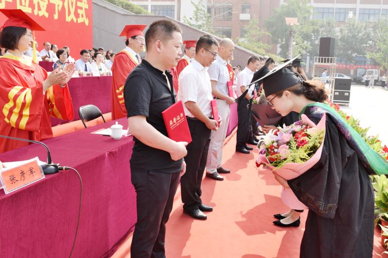 校党委书记周志远为优秀毕业生代表颁发毕业证书