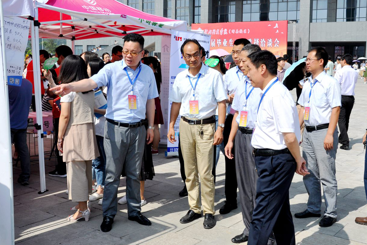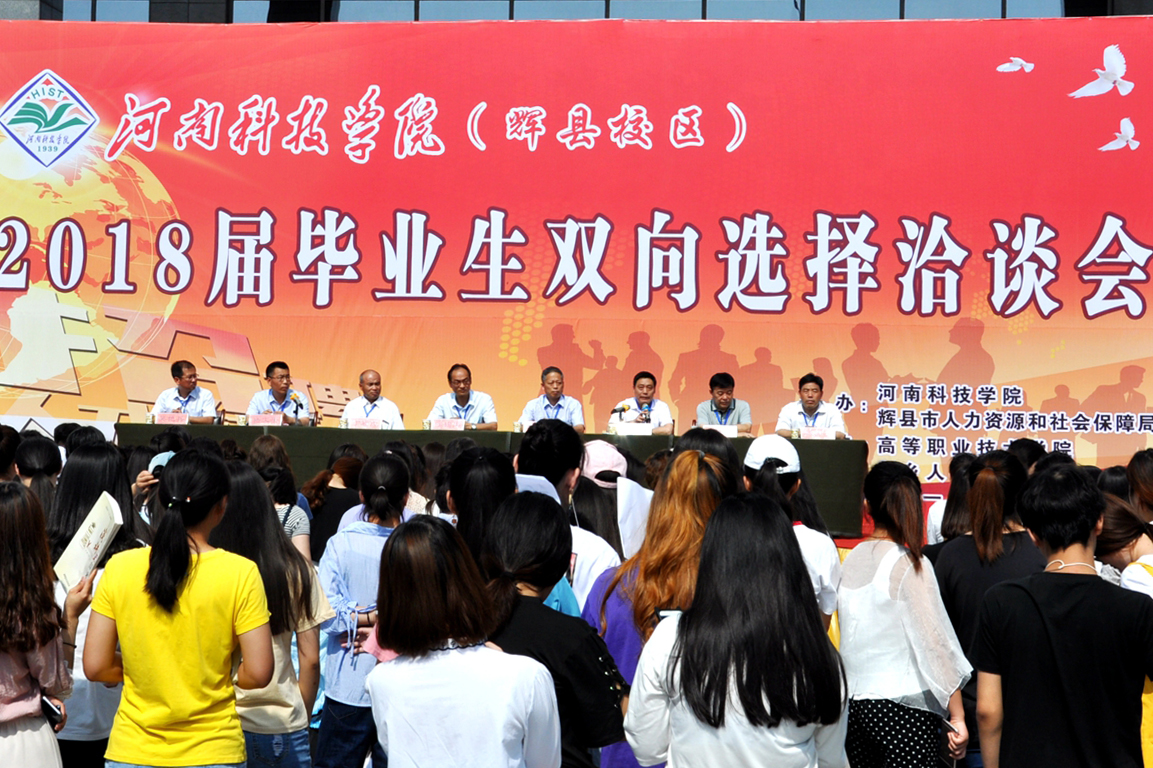 为搭建校企人才沟通平台,6月11日上午,由高职学院和辉县市人力资源、社会保障局共同举办的2018届毕业生双向选择洽谈会在东区综合楼前广场举行。