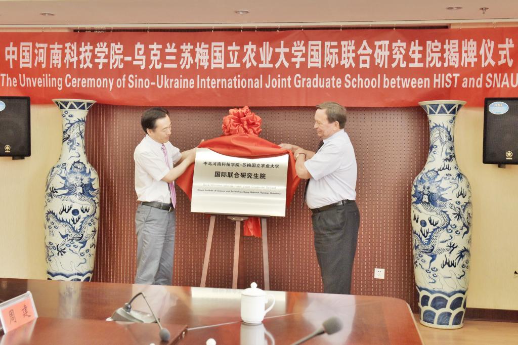 随后,李成伟和尼古拉·索科洛夫共同为“中乌河南科技学院-苏梅国立农业大学国际联合研究生院”揭牌。