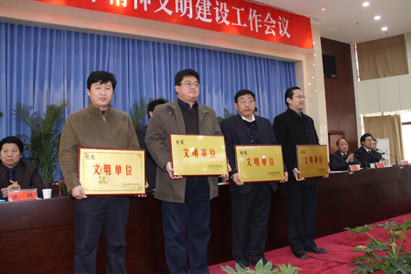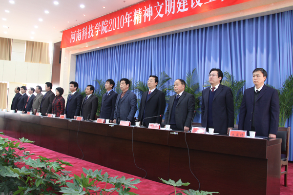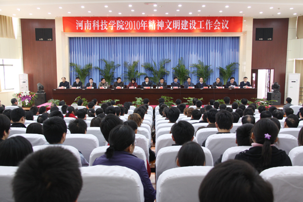 3月25日下午,我校在行政楼三楼多功能报告厅隆重召开2010年精神文明建设工作会议。校党政领导严全治、王清连、张玉珍、郭海波、梁赖、张民校、郭海山、王文鹏、刘兴友、窦玉玺、刘荣增、冯启高、王舜书、宋亚伟等出席会议。全校各单位、各院系党政负责人,政工干部,受表彰的文明单位、文明教师、文明班级、文明学生代表等300余人参加会议。