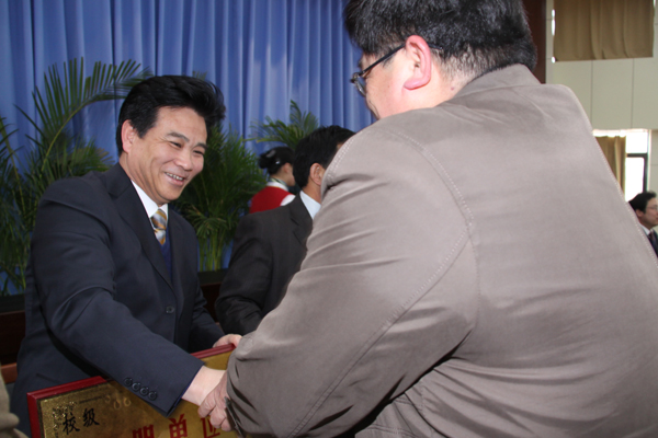 党委书记严全治等校领导为文明单位、文明教师、文明学生代表颁奖