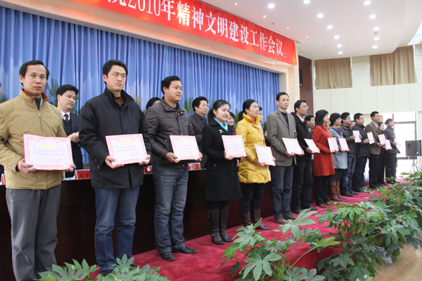 会议在雄壮的国歌和激越的校歌声中开幕。副校长冯启高宣读了《关于表彰2009年度精神文明建设先进集体和先进个人的决定》。在欢快的乐曲声中,校领导为文明单位、文明教师、文明班级、文明学生代表颁奖。