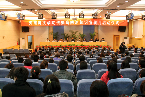 启动仪式上,副校长王舜书对我校开展传染病防治知识宣传月活动进行了部署,并对如何做好我校2010年的传染病防治工作提出了要求,校医院院长何茶叶宣读了我校传染病防治知识宣传月活动通知及安排。新乡市疾病预防控制中心副主任李华峰、新乡市结核病防治所副所长张软青、新乡市红旗区疾病预防控制中心疾控科长王英姿,我校相关职能部门、各院系等单位负责人以及学生代表200余人参加了启动仪式。