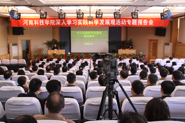 4月9日下午,我校深入学习实践科学发展观活动专题报告会在图书馆报告厅举行。党委书记、校深入学习实践科学发展观领导小组组长严全治作专题辅导报告。在校的学校党政领导、处级干部、高级职称人员、博士、机关科级干部等300余人参加了报告会。报告会由校党委副书记张玉珍主持。