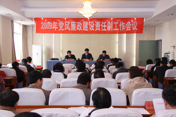 4月2日,校党委在综合电教楼楼八楼第三会议室召开了2009年党风廉政建设责任制工作会议。党委书记严全治、校长王清连、党委副书记张玉珍、副校长窦玉玺、刘荣增、纪委书记张民校、工会主席郭海山出席会议,全校正处级干部参加了会议。