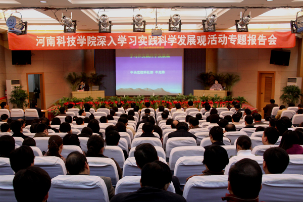 校党委副书记张玉珍要求各党总支、各部门按照校党委安排,认真组织、讨论和学习牛教授的报告精神,真正做到以科学发展观来统一思想、指导行动、推进工作,促进学校各项事业又好又快发展。