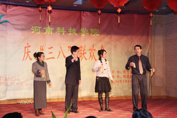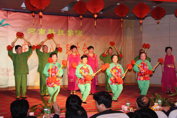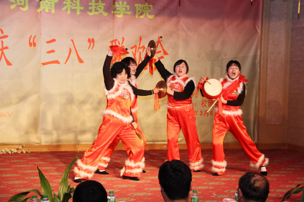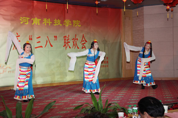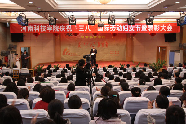 为庆祝“三八”国际妇女节,进一步推动我校女职工工作的深入开展, 3月6日下午,校工会在图教201举办了庆“三八” 表彰暨联欢会。严全治、张玉珍、郭海波、梁赖、窦玉玺、刘荣增、张民校、郭海山等党政领导出席会议并观看演出。各院系、机关职能部门负责人、分会主席和全校女教职工代表等300余人参加了会议。