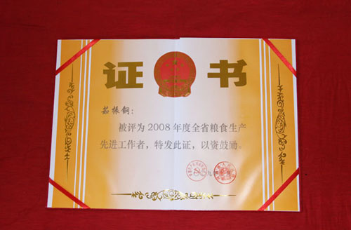 年度全省粮食生产先进工作者”