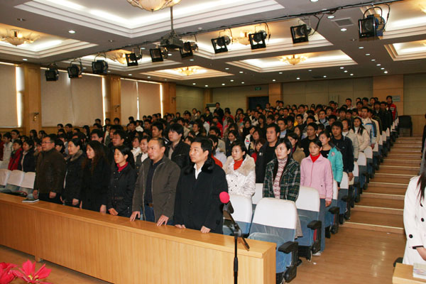 12月5日下午,我校2008年度国家奖助学金暨国家助学贷款发放仪式在图书馆二楼报告厅举行。校党委副书记郭海波、副校长窦玉玺出席大会,学生处、财务处相关负责人,各院系党总支副书记、辅导员及学生代表共300余人参加大会。会议由学生处处长何雅璞主持。