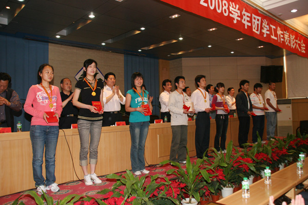 5月13日下午,我校在图书馆报告厅隆重召开2007-2008学年团学工作表彰大会。校党政领导严全治、王清连、张玉珍、郭海波、梁赖、刘兴友、窦玉玺、张民校、郭海山等出席会议,党委学工部、学生处,校团委和相关部门负责人,各院(系)党总支书记、副书记和分团委书记、政治辅导员,以及受表彰的先进集体和个人代表等300余人参加会议。