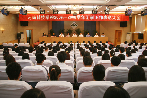 大会在激昂的团歌和激越的校歌声中开幕,副校长窦玉玺宣读了《共青团河南省委关于表彰河南省优秀共青团员、模范团干部和先进基层团组织的决定》、《共青团新乡市委关于表彰2007年度先进集体和先进个人的决定》、《中共河南科技学院委员会、河南科技学院关于表彰学生工作先进单位和优秀辅导员的决定》、《河南科技学院关于表彰2007—2008学年优良学风班、三好学生等先进集体和先进个人的决定》、《共青团河南科技学院委员会关于表彰五四红旗团委、范团干部等先进集体和先进个人的决定》等文件。