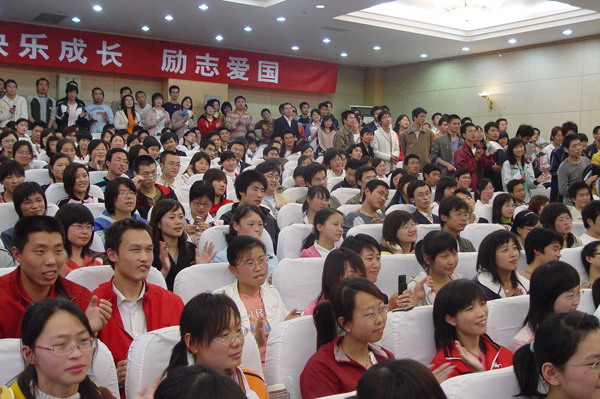 三位主讲人用幽默诙谐的语言结合自身不断挑战自我、超越自我的事例,阐述了“追求卓越,挑战极限,从绝望中寻找希望,铸就人生辉煌”的新东方精神,给同学们以极大的启迪和鼓舞。他们还讲述了各自学习英语的经历,分析了由东西方文化差异导致的语言学习和使用的不同特点,并向大家传授了英语学习经验和学习方法。场内气氛十分热烈,图书馆报告厅内座无虚席,更有不少同学坐在讲台上,站在通道内听完了近三个小时的整场演讲。几位老师的精彩演讲博得了同学们的阵阵掌声和喝彩。