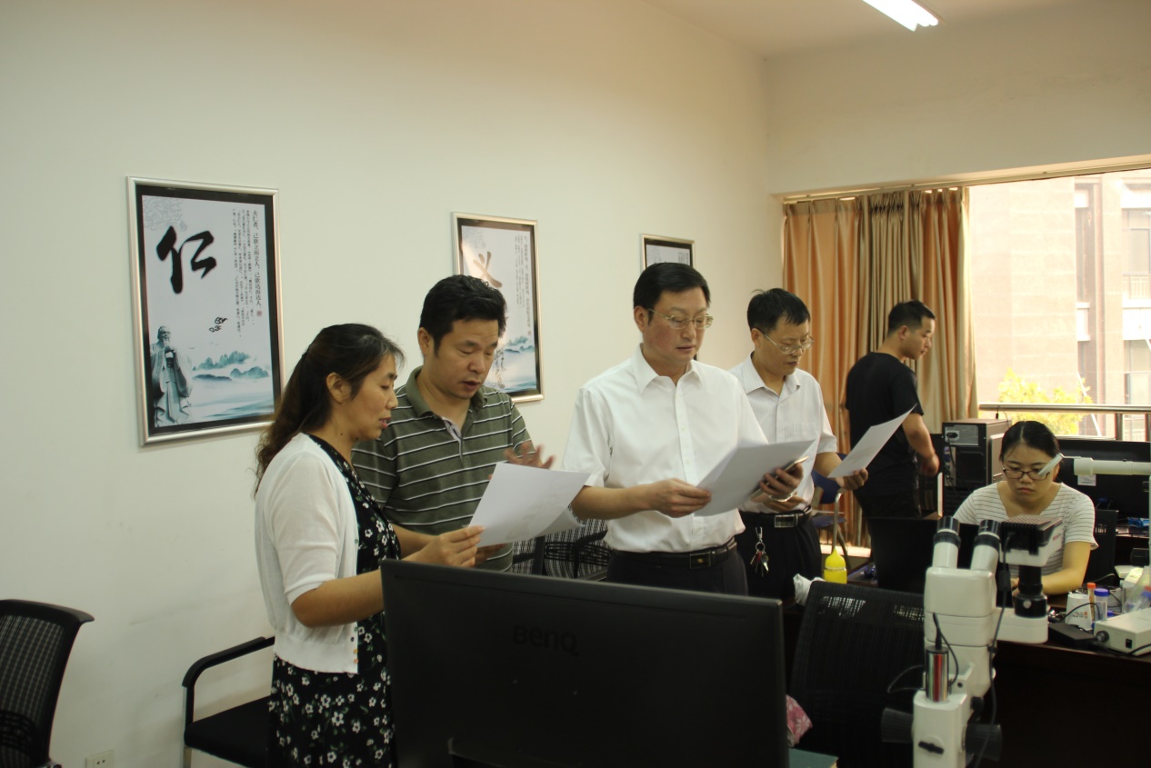 何松林一行参观了新乡市和谐公园科研基地的实验室、实验设备,详细询问了科研基地工作开展情况。在计算机辅助昆虫绘图室,何松林观看了学员绘图作品,与学员进行了亲切交流,鼓励他们继续努力,不断提高绘图技能,以较高的专业水平完成各项科研基地工作。