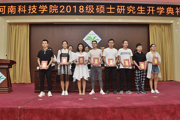 何松林宣读了《河南科技学院关于颁发2018级研究生优秀新生奖学金的决定》。与会领导为获得2018级研究生优秀新生奖学金的同学颁发了荣誉证书。