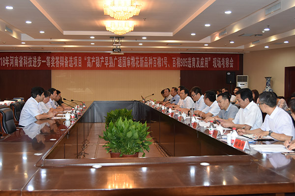 我校“高产稳产早熟广适国审棉花新品种百棉1号、百棉985选育及应用”项目通过考察后,将进入河南省科学技术进步一等奖答辩环节。