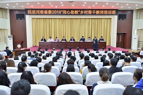 10月10日上午,民进河南省委“同心助教”乡村骨干教师培训班开班典礼暨系列脱贫帮扶活动启动仪式在我校举行。河南省政协副主席、民进河南省委主委张震宇,我校党委书记周志远,新乡市人大常委会主任、市委组织部部长王乐新,新乡市政府副市长、民进新乡市委主委李瑞霞等出席开班典礼。开班典礼由民进河南省委专职副主委朱彤晖主持。