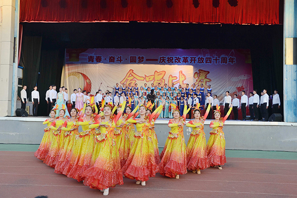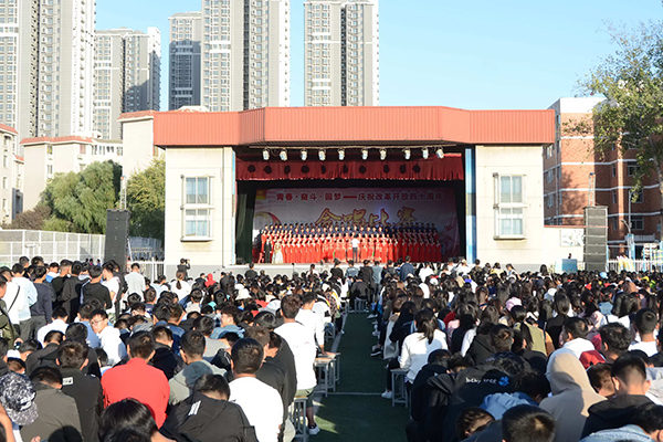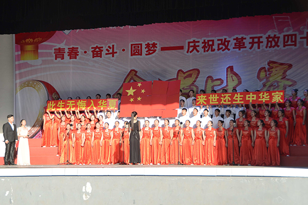 为隆重庆祝改革开放40周年,展示我校青年学生团结奋进、蓬勃向上的精神风貌,激励引导青年学生在实现中国梦的生动实践中放飞青春梦想,在为人民利益的不懈奋斗中书写人生华章,10月28日下午,由党委宣传部、党委学工部、校团委主办的“青春·奋斗·圆梦”庆祝改革开放40周年合唱比赛在西区操场举行。副校长王霞和党委宣传部、党委学工部、校团委等相关单位负责人,各学院党委副书记、辅导员及学生代表一起观看了比赛。