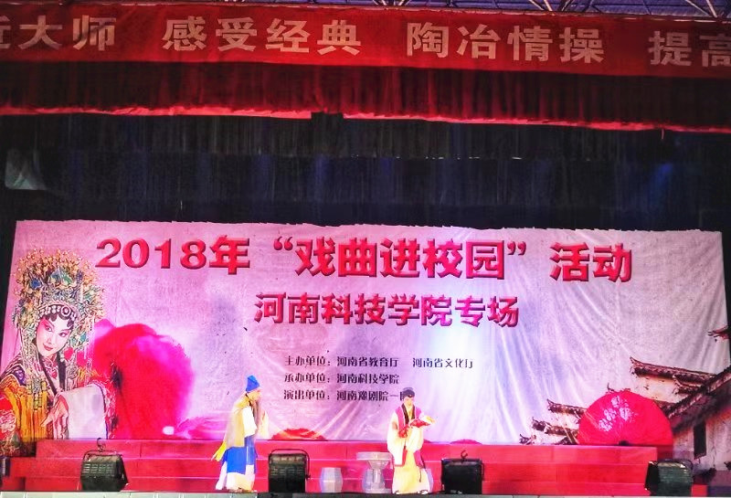 为活跃我校校园文化,提升师生艺术素养,11月10日下午,由河南省教育厅、河南省文化厅主办的2018年“舞台艺术送基层”活动“戏曲进校园”高校组走进我校,在西操场大舞台举行了两场戏曲专场演出。校党委副书记宋亚伟、杨松璋和宣传部、学生处、校团委、艺术学院等相关职能部门负责人、辅导员及学生代表七千余人一起观看了演出。