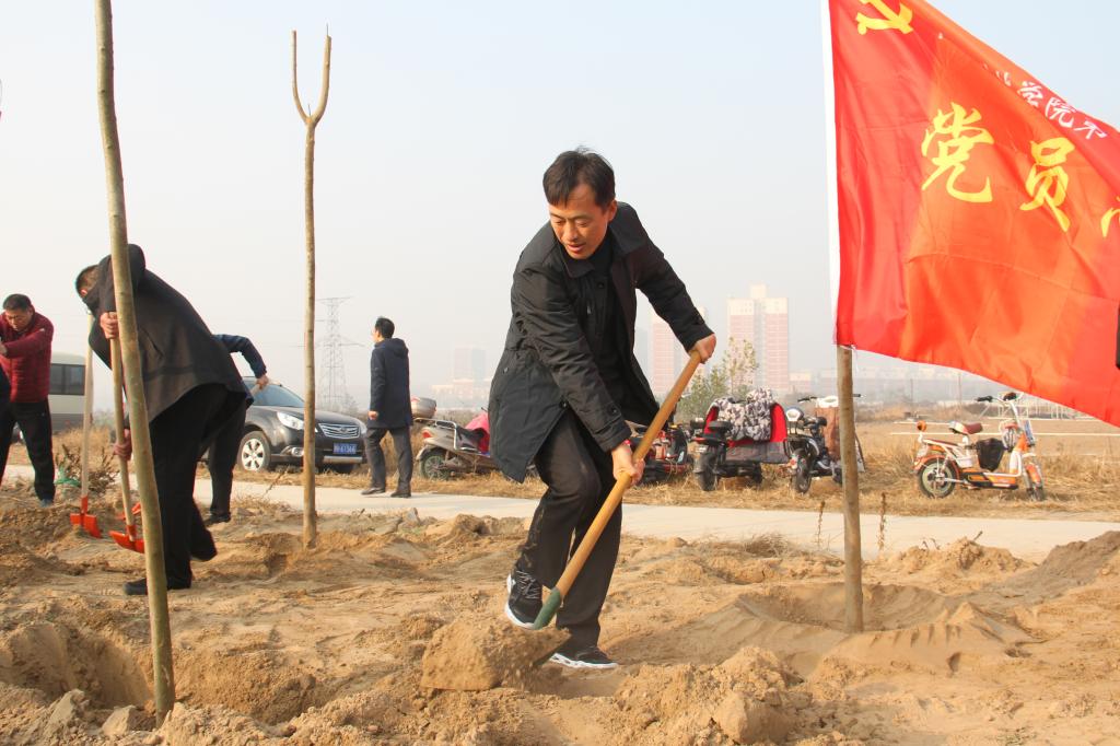 活动现场,人潮涌动,红旗招展。师生热情高涨,干劲十足,团结协作,严格按照“三埋二踩一提苗”标准技术规范栽植,领取树苗、挖坑、填土、浇水等环节井然有序,树苗横成排,竖成行,迎风而立,热火朝天的劳动景象成为冬日里一道美丽的风景线。