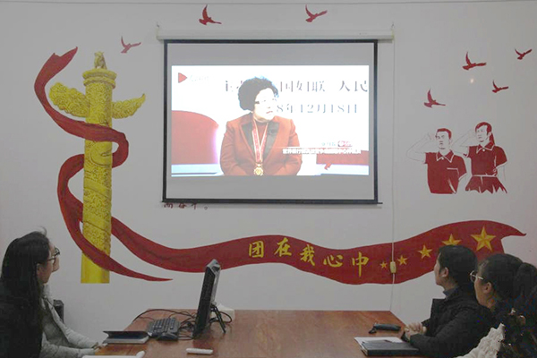 12月18号下午,由全国妇联在人民网强国论坛举办了网络访谈直播《改革开放 巾帼力量》,艺术学院分会组织30余名女教职工在十一号楼208会议室集体观看。