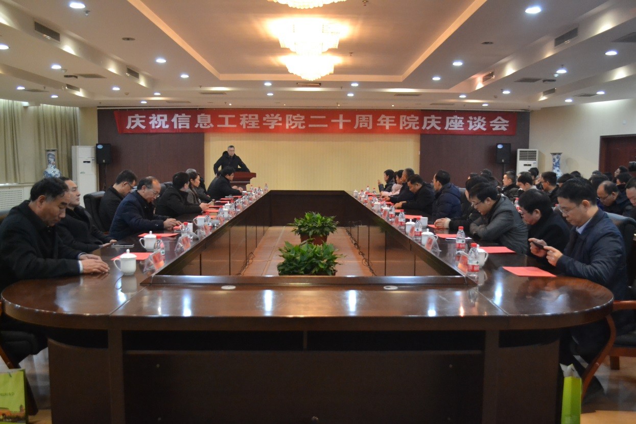 1月13日上午,我校信息工程学院20周年院庆座谈会在行政楼206会议室举行。校党委副书记宋亚伟出席座谈会,兄弟院校代表、信息工程学院现任党政领导班子成员和原任老领导、在学院工作过的老同志、退休老教师、教师代表和校友代表共60余人参加了座谈会。会谈会由信息工程学院党委书记郎瑞红主持。