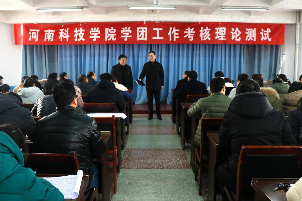 本次考核分理论测试、模块考核(指标体系)、工作品牌展示(PPT汇报)三项内容。在各学院提交了模块考核材料后,1月11上午,在校团委会议室,各学院党委副书记、专兼职辅导员及学工部、学生处、校团委所有人员参加了理论测试。校党委副书记杨松璋到理论测试现场指导工作。他指出,学生工作是学校基础性工作,学工队伍建设是学生工作重要保障,希望全体学工人员要在“一讲四促”活动基础之上,努力学习,认真总结,相互交流,共同进步,大力推进学工队伍向专业化职业化方向发展,为学校各项事业发展做出应有贡献。