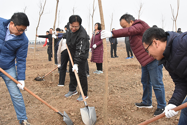 为积极响应党的十九大“开展国土绿化行动”号召,全面贯彻习近平生态文明思想,2月28日上午,新乡市委、市政府组织开展了2019年全市春季义务植树活动,我校党委书记周志远、校党委副书记宋亚伟、副校长冯启高以及部分教职工代表参加了新乡县合河乡的义务植树活动。